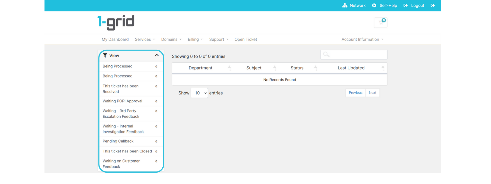 4. Viewing Your Logged Support Tickets in Your 1-grid Customer Zone