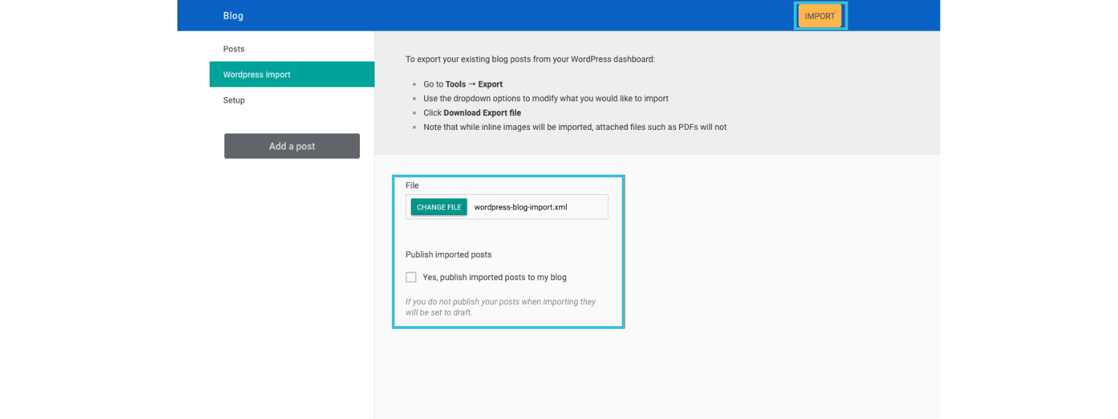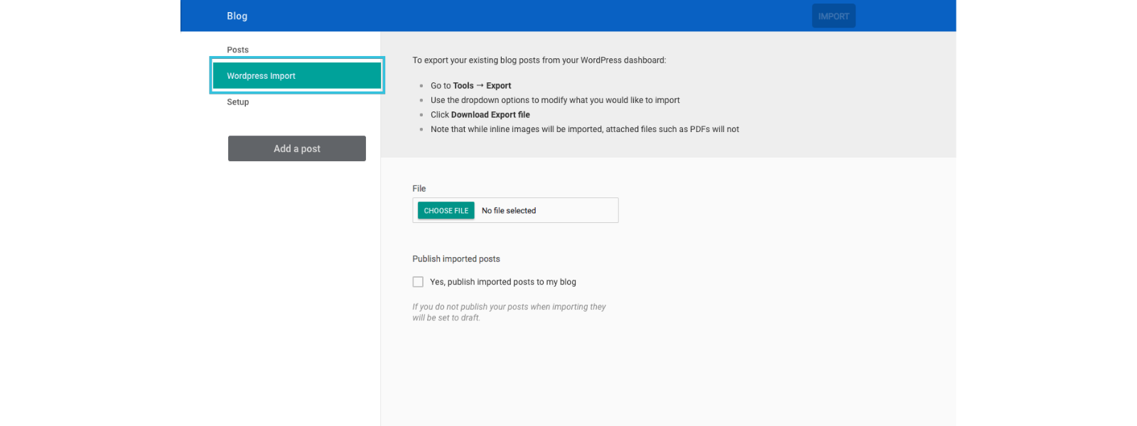 For large blogs with many posts, the import process may take some time. Allow it to complete without interruption.
